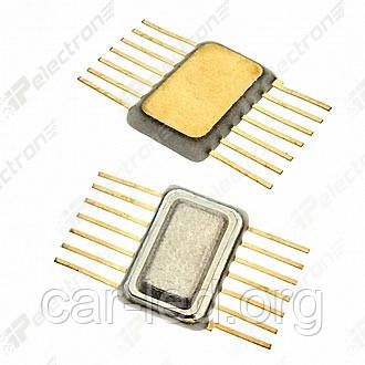 Маркування мікросхеми та схема з'єднання електродів з висновками наводяться на корпусі.