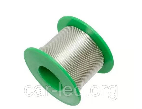 Припій безолив'яний у котушці. Діаметр дроту 0,8 мм. Вага 50 грамів. Температура плавлення 200-250 °C.